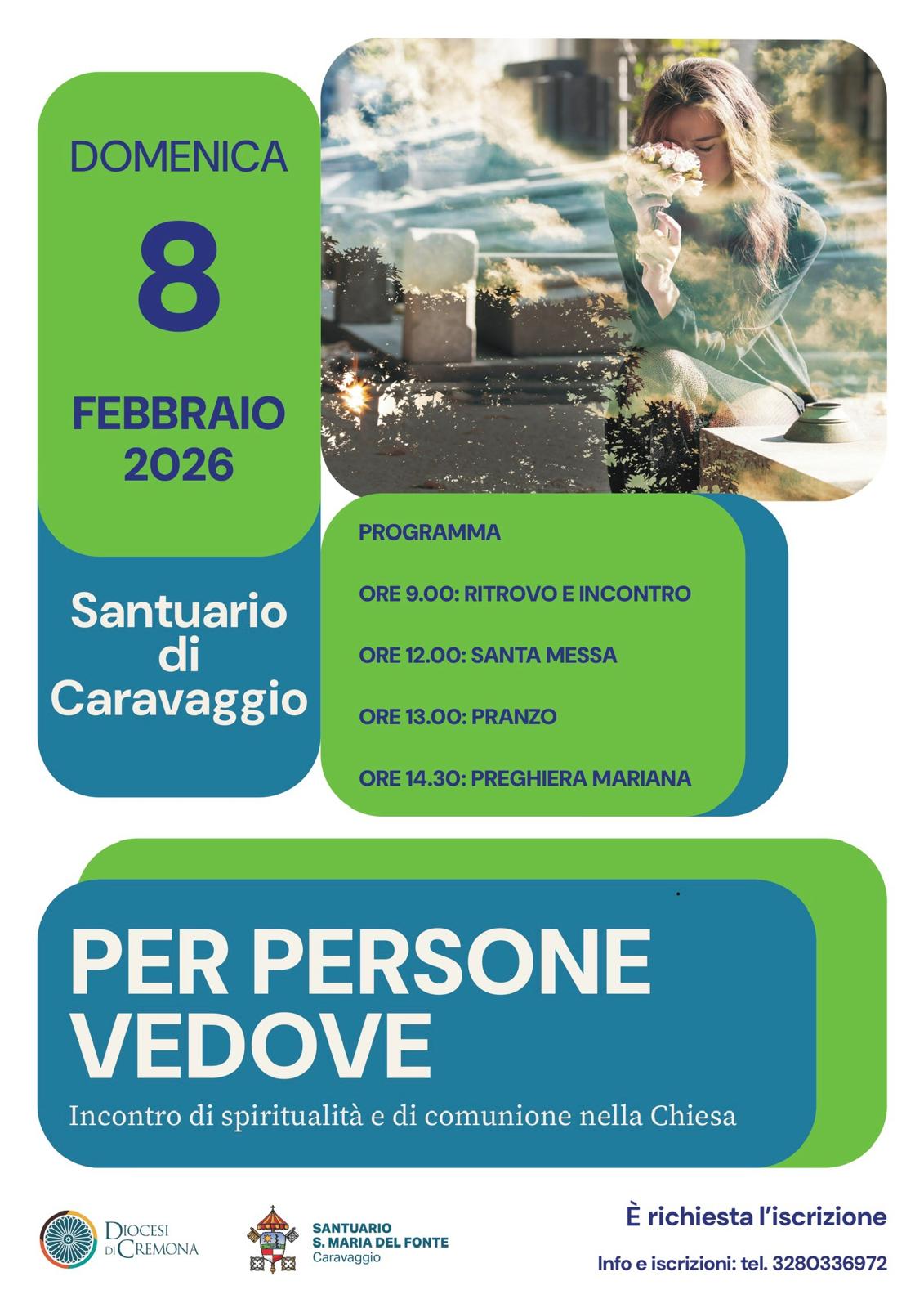 In questa direzione si pone la nuova proposta organizzata presso il Centro di Spiritualità del Santuario di Caravaggio e in programma l’8 febbraio prossimo. L’incontro, rivolto a tutte le persone vedove, uomini e donne, si svolgerà secondo un programma che prevede alle ore 9.00 l’accoglienza e una riflessione spirituale condotta dal Rettore, don Massimo Calvi. Segue un tempo di silenzio e di condivisione, quindi la santa Messa e il pranzo. Nel pomeriggio l’incontro si chiuderà con un momento di preghiera e affidamento davanti allo speco di Maria, all’interno del Santuario. È proprio lei, Consolatrice degli afflitti ma anche Madre dell’amore e Madre della speranza a farsi compagna