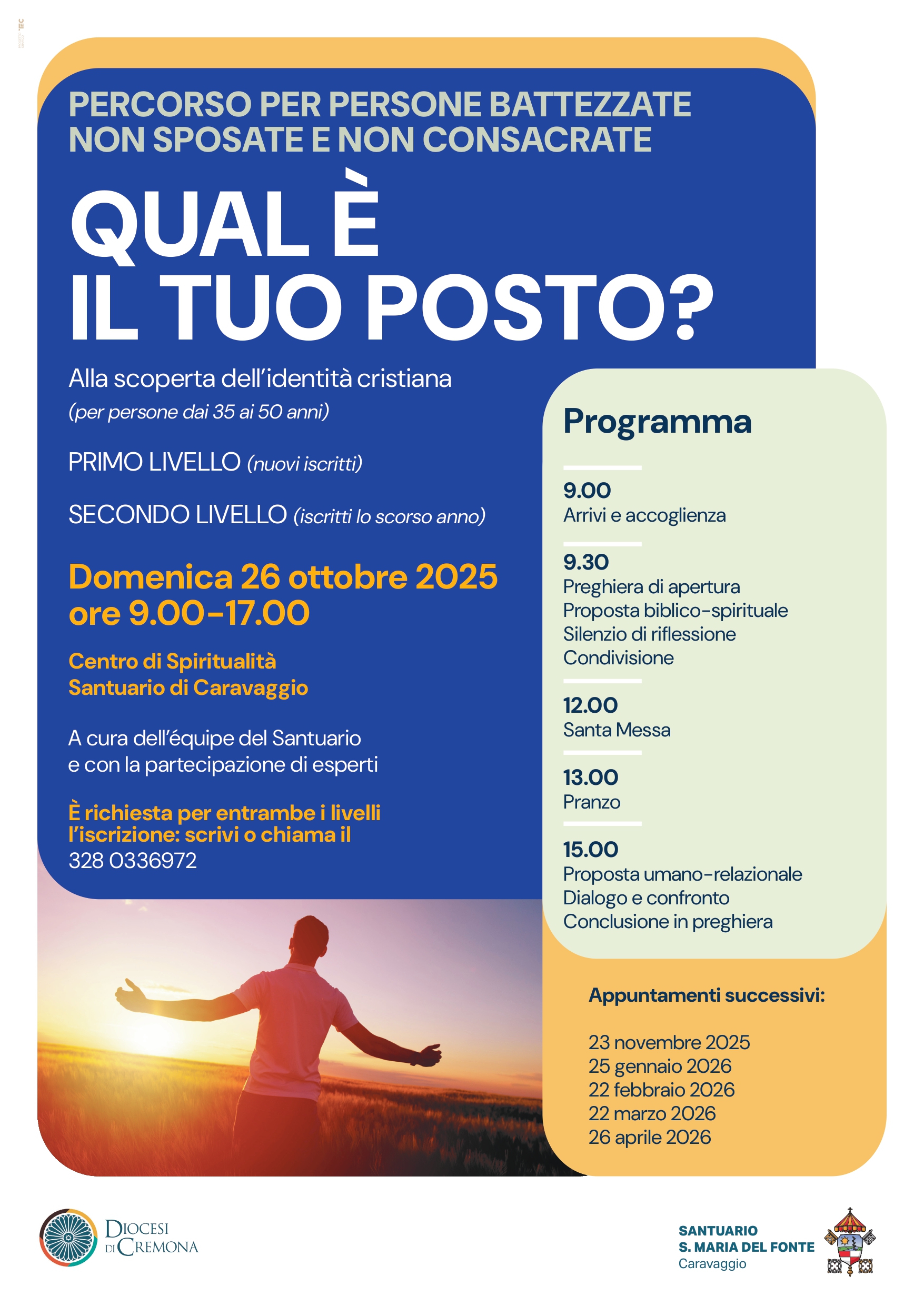 Per Informazioni e iscrizioni si possono seguire le indicazioni della locandina o scrivere direttamente a: centro@santuariodicaravaggio.org